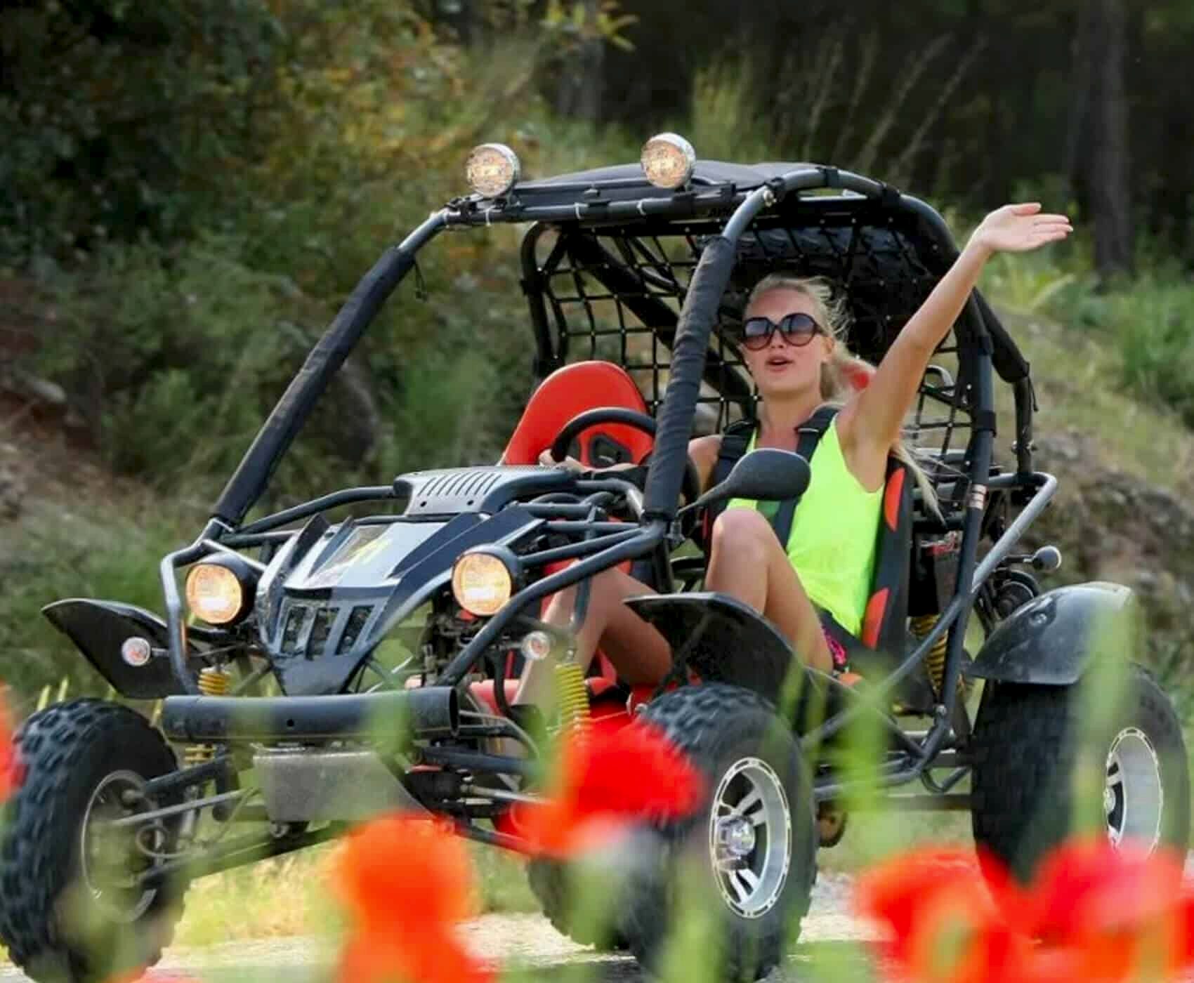 Bu aktivenin içeriği Rafting turu ile kombine edilen Atv Safari, ya da Buggy Safari’den oluşur. Etkinlik alanına vardığınızda sürüş parkuruna girmeden önce Quad ya da Buggy aracını seçme esnekliğine sahipsiniz. Jeep Safari’den farklı olarak bu arazi araçları maksimum 2 kişi kapasitelidir ve bu araçları bizzat kendiniz kullanabilmektesiniz. Quad ve Buggy her ikisi de dört tekerli arazi aracıdır.